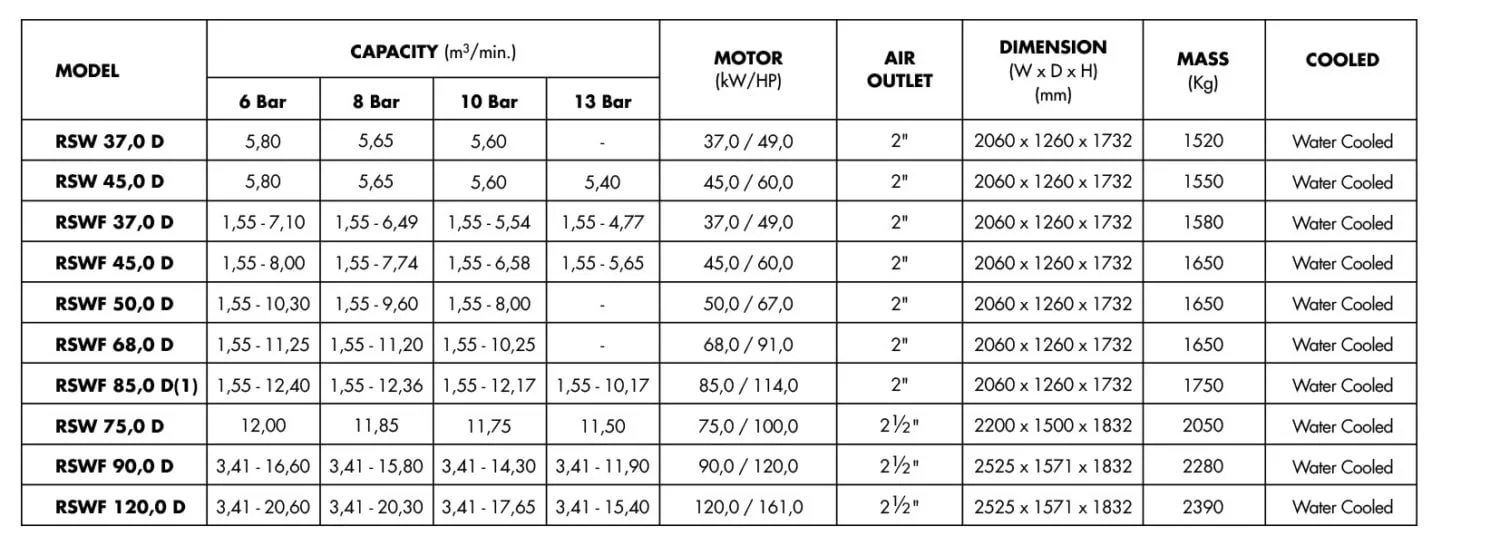 In addition to the standard version, the RSWF series of water-injected compressors with variable speed control is available for economical operation with highly fluctuating compressed air requirements.