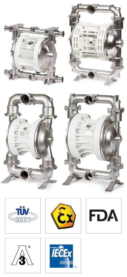 Pnömatik diyaframlı gıda işleme pompaları; aşındırıcı, agresif, yüksek viskoziteli ve yanıcı – patlayıcı akışkanlara uyumlu pompalardır. Yüksek viskoz sıvıların proses içine transferi için mükemmel bir seçim olacaktır.