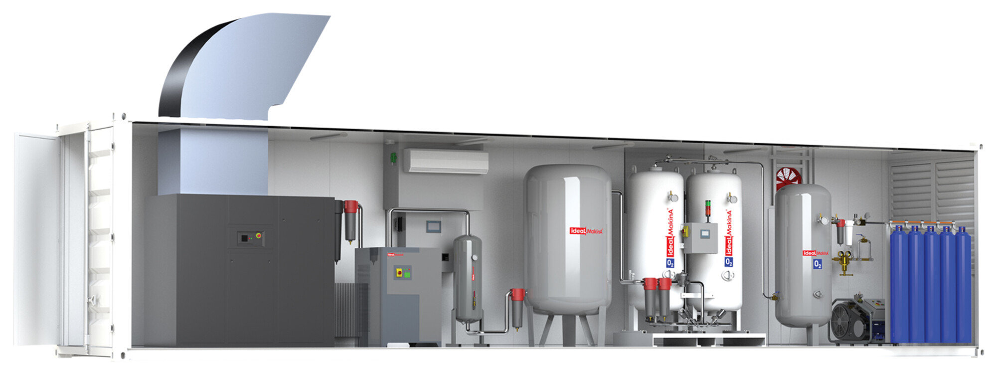 İdeal Makina’nın siz müşterilerimize özel dizayn ile tasarladığı şase üzeri oksijen/azot dolum istasyonuyla kendi oksijen/azot gazınızı tesisinizin dilediğiniz kapalı alanında üretebilmeniz mümkün!